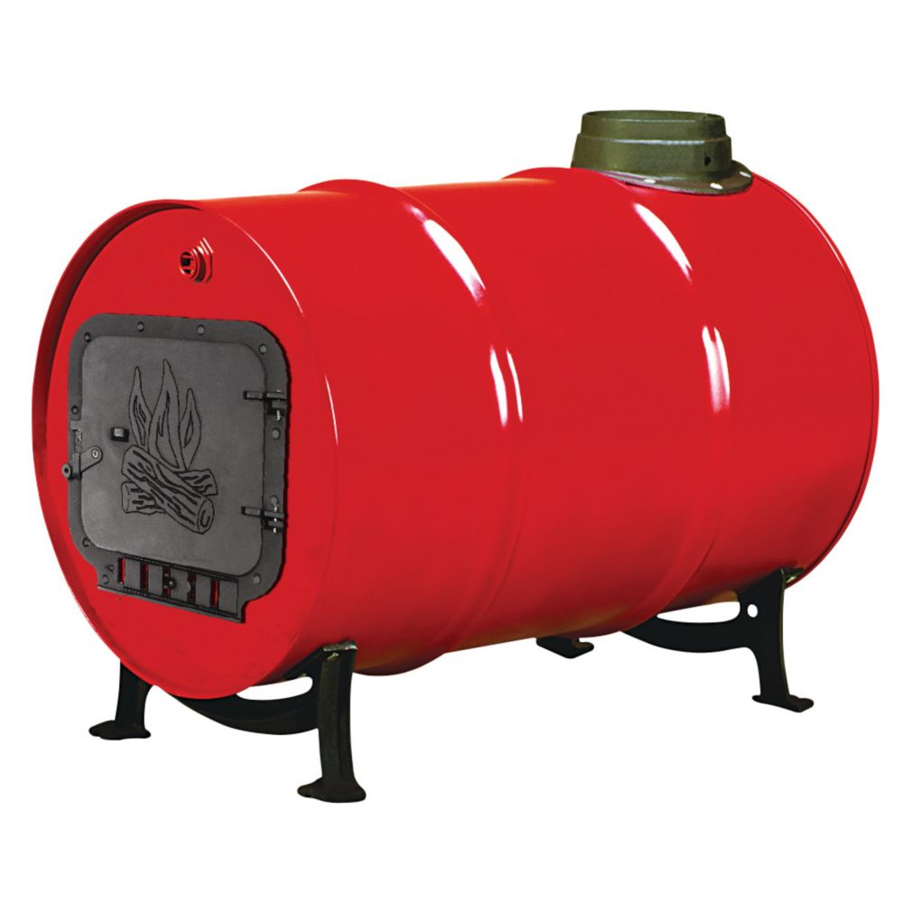 This first sort of stove is the cheapest you can get. You simply buy a conversion kit online that will transform any metal barrel (typically 36- or 55-gallon barrels) into a woodstove. Each kit comes with a door that will be screwed on one end of a metal barrel, two pairs of legs, and a damper for where the barrel will connect to the stove pipe. These are most commonly installed in a workshop or other outbuilding as they take up a lot of room and are not generally approved for use inside a dwelling.
